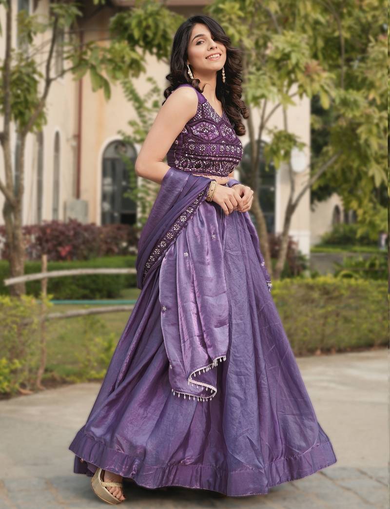Lavender color plain flairy lehenga work fendy lehenga with unstitched blouse