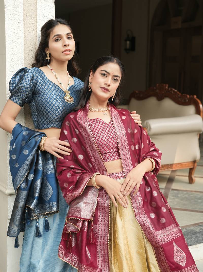 | Product Description | A Majestic Combination Of A Silk Skirt In Deep Jewel Tones And A Bright, Contrasting Dupatta, Offering A Perfect Silhouette For Weddings And Grand Celebrations, A Beautiful Pair Of Lehenga,Blouse N Voni To Glame Up A Look |