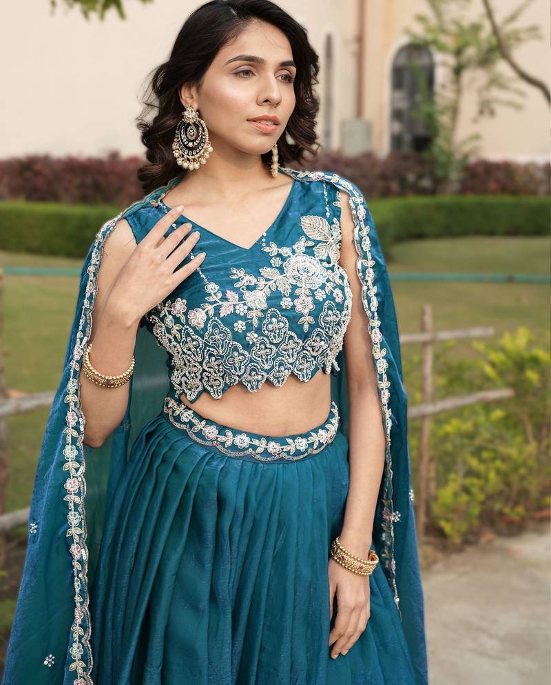 | Product Description | Teal Color Lehenga Crafted From Art Silk Fabric That Offers A Rich Texture And Graceful Appearance. The Blouse Features Premium Beads Work That Adds Detailed Design And Enhances The Overall Look Of The Outfit. The Blouse Comes In A Fully Unstitched Style, Allowing Flexible Stitching According To Personal Fit And Preferred Design. The Art Silk Lehenga Has A Smooth Finish And Beautiful Flare That Gives The Outfit A Traditional Yet Stylish Appeal. The Teal Color Creates A Royal Appearance, While The Delicate Beadwork Adds Charm To The Ensemble. The Matching Dupatta Complements The Set And Completes The Look. This Teal Color Art Silk Lehenga Is A Lovely Option For Festive Events, Weddings, And Special Celebrations. |