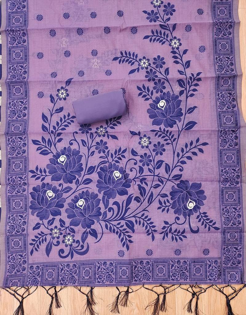 | Product Name | Purple Muga Cotton Jamdani Ethnic Motif Dress Material Set | |
