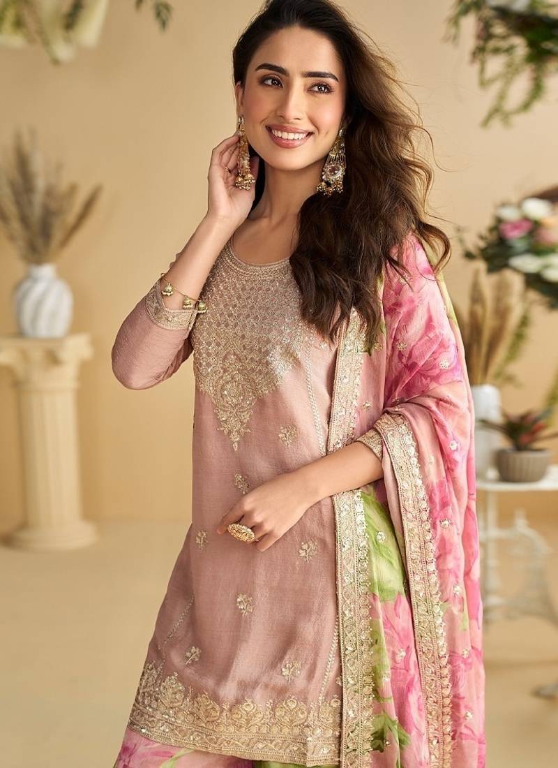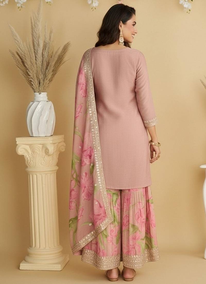 Perfect For Diwali Eid Bhai Duj Ganesh Chaturthi Party Wear And Raksha Bandhan This Sharara Suit Combines Tradition With Festive Appeal. The Pink Tone Brings Radiance While The Embroidery And Prints Create Festive Sophistication. It Is An Excellent Choice For Weddings Cultural Events And Family Occasions.