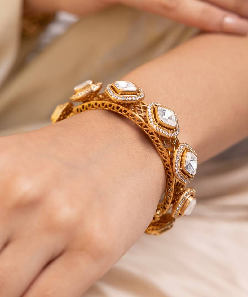 Gold plated kundan bangle