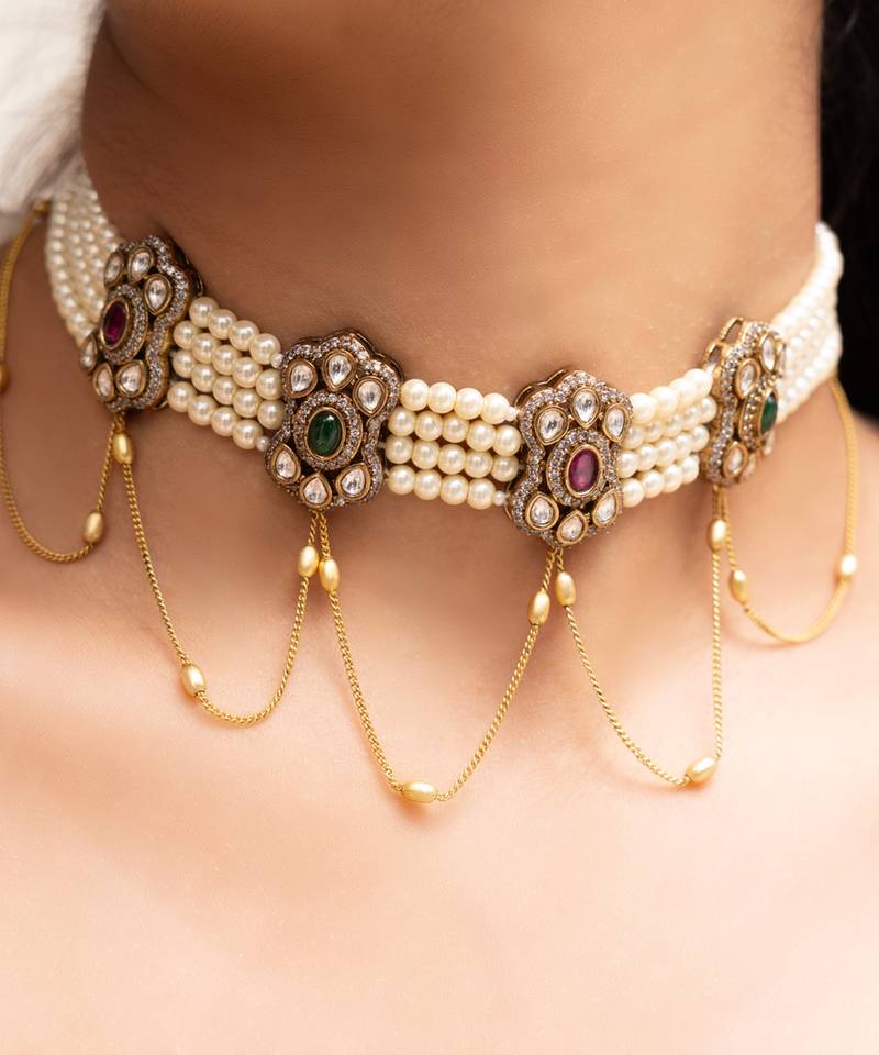| Product Name | Gold Plated Kundan Pearl Choker Necklace Set | |