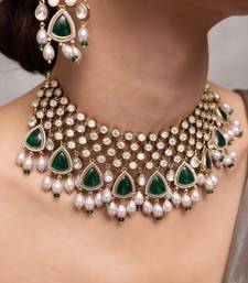 | Product Description | This Statement Choker Showcases Layers Of Mirror Polished Stones, Kundan Detailing, And Emerald Green Drops. Finished With Matching Earrings, It's Perfect For Wedding Ceremonies And Bridal Receptions.