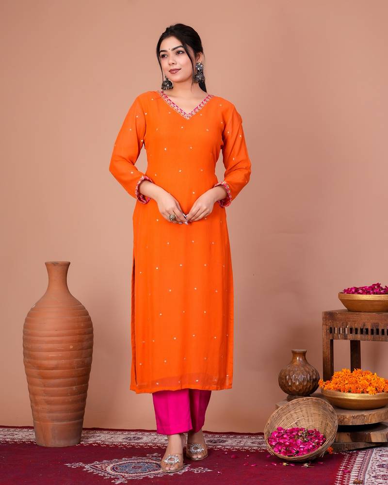 Orange georgette embroidered kurta sets