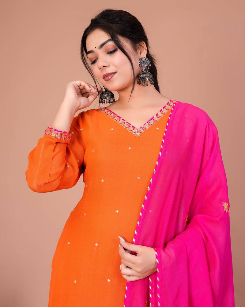 | Product Name | Orange Georgette Embroidered Kurta Sets | |