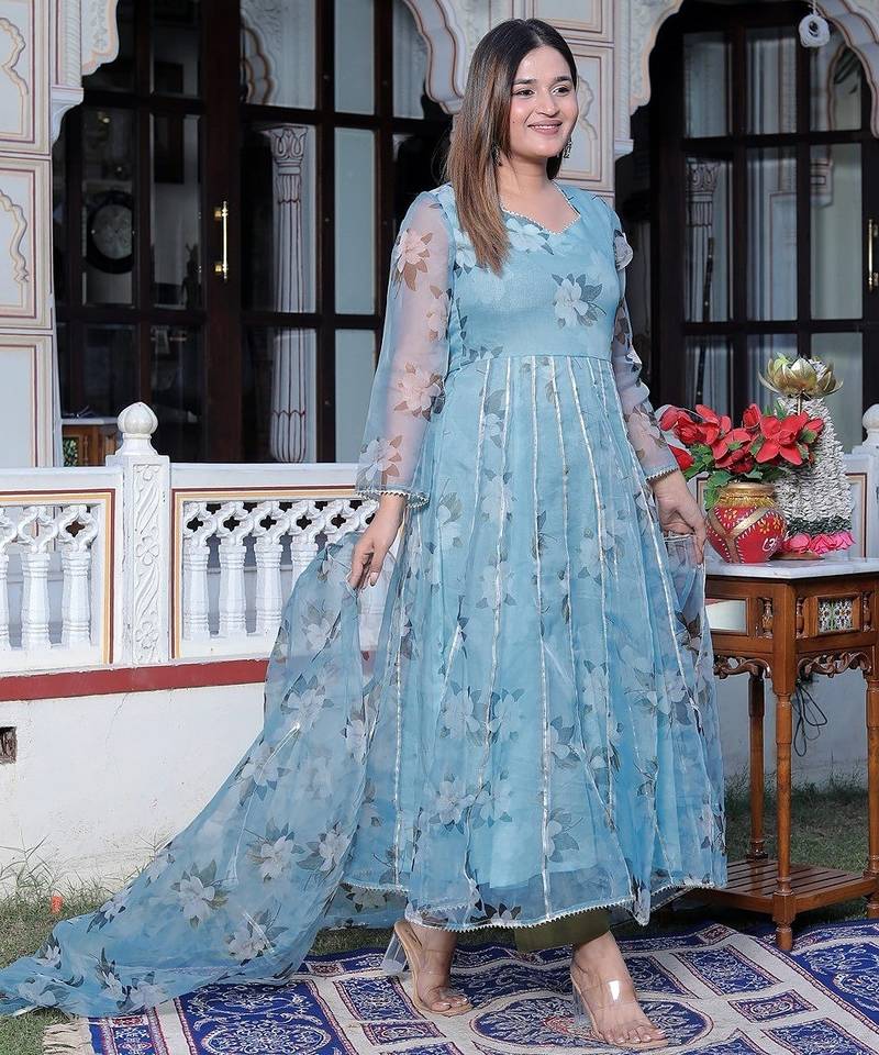 Product Name Blue Printed Oraganza Kurta Pant With Dupatta