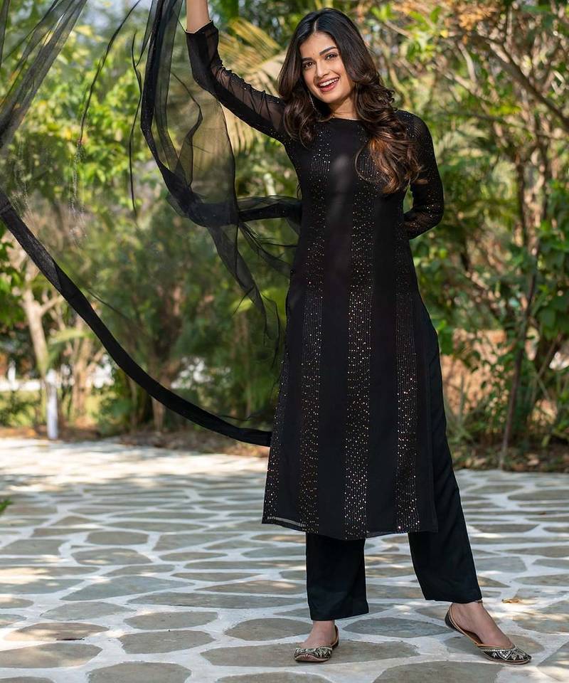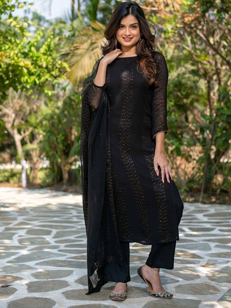 | Product Name | Women's Black Faux Georgette Sequin Embroidered Kurta Pant Set With Net Dupatta | |