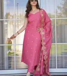 Women's pink green viscose chanderi sequin embroidered kurta pant set with dupatta