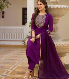 Women's purple rayon sequin embroidered kurta pant set with solid chinon dupatta