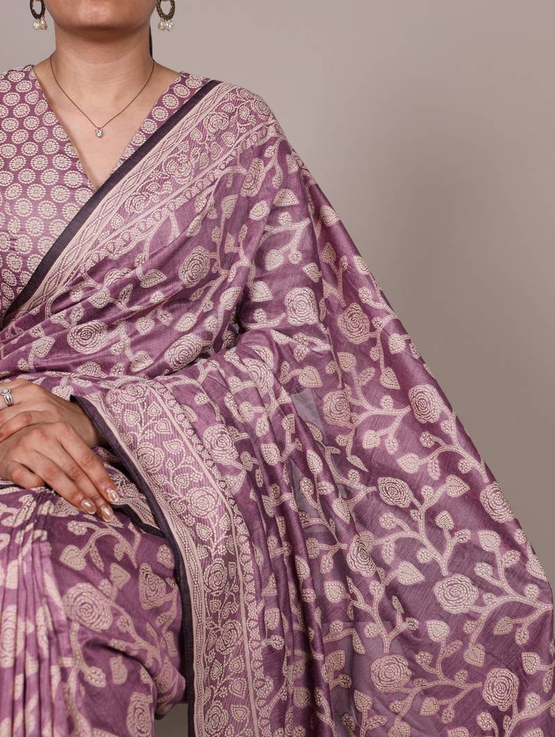 Graceful cotton silk saree with organic floral prints