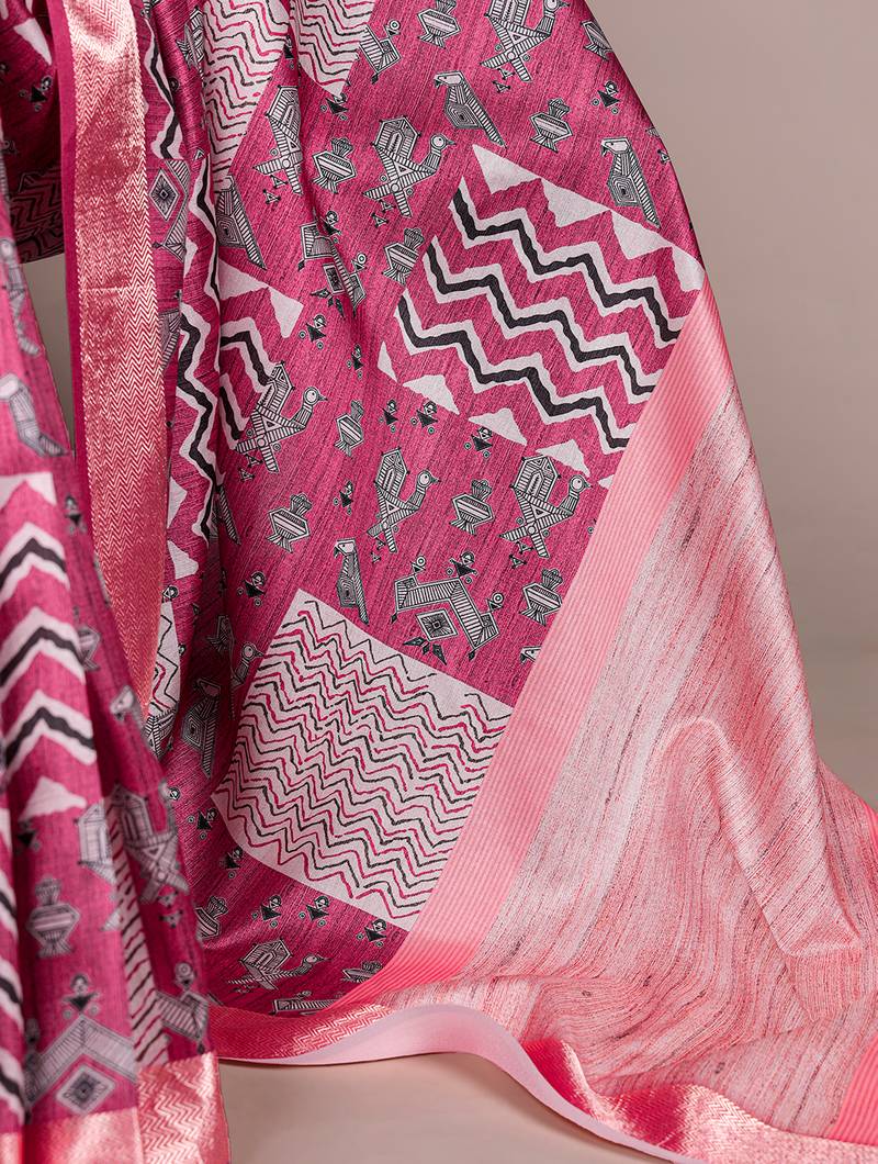 | Product Name | Premium Tassar Silk Printed Saree With Glossy Viscose Border | |