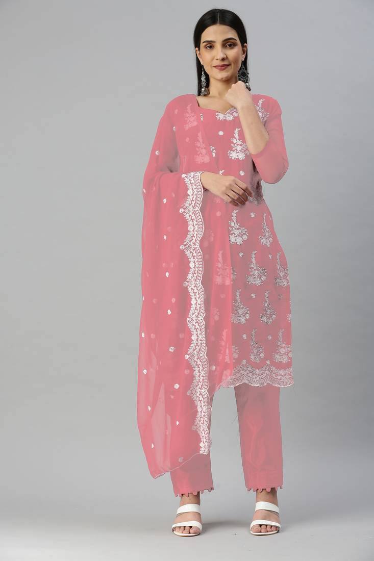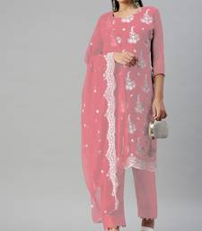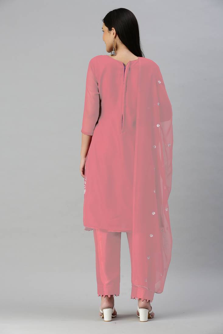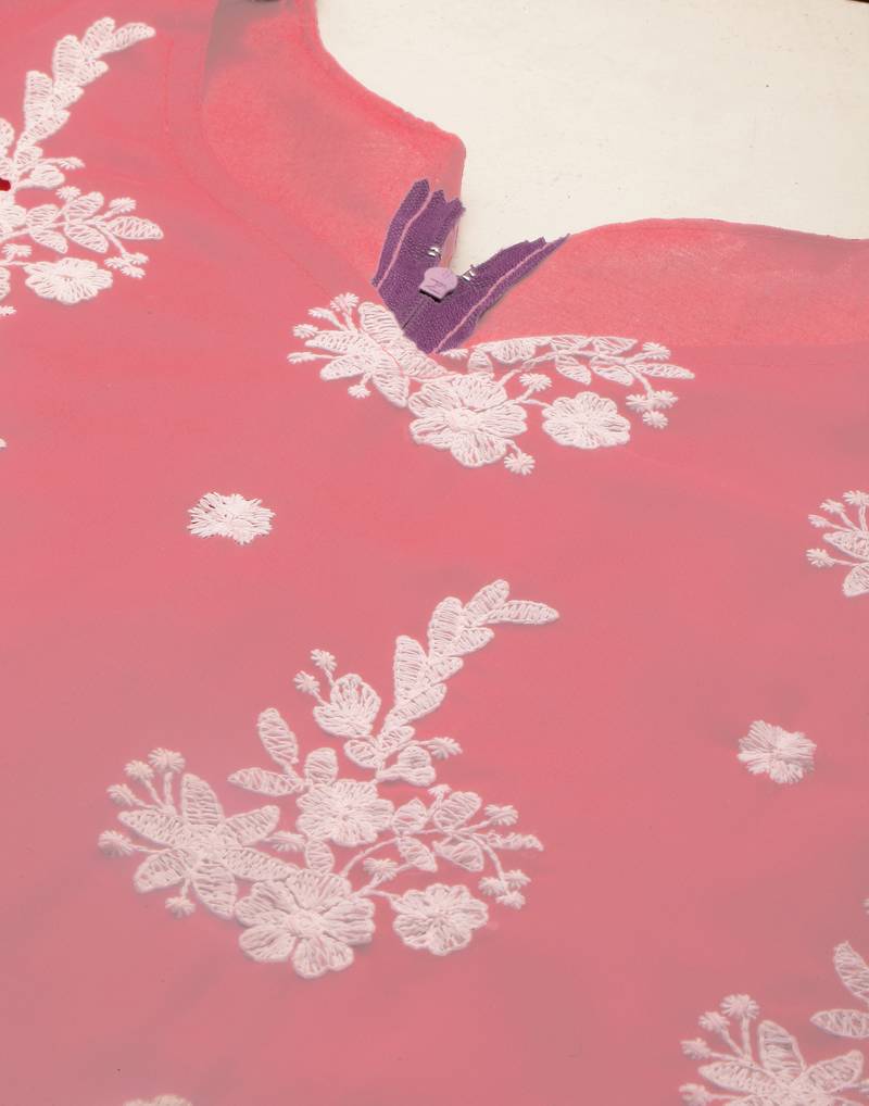 Pink embroidered georgette salwar unstitched