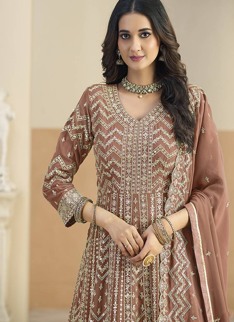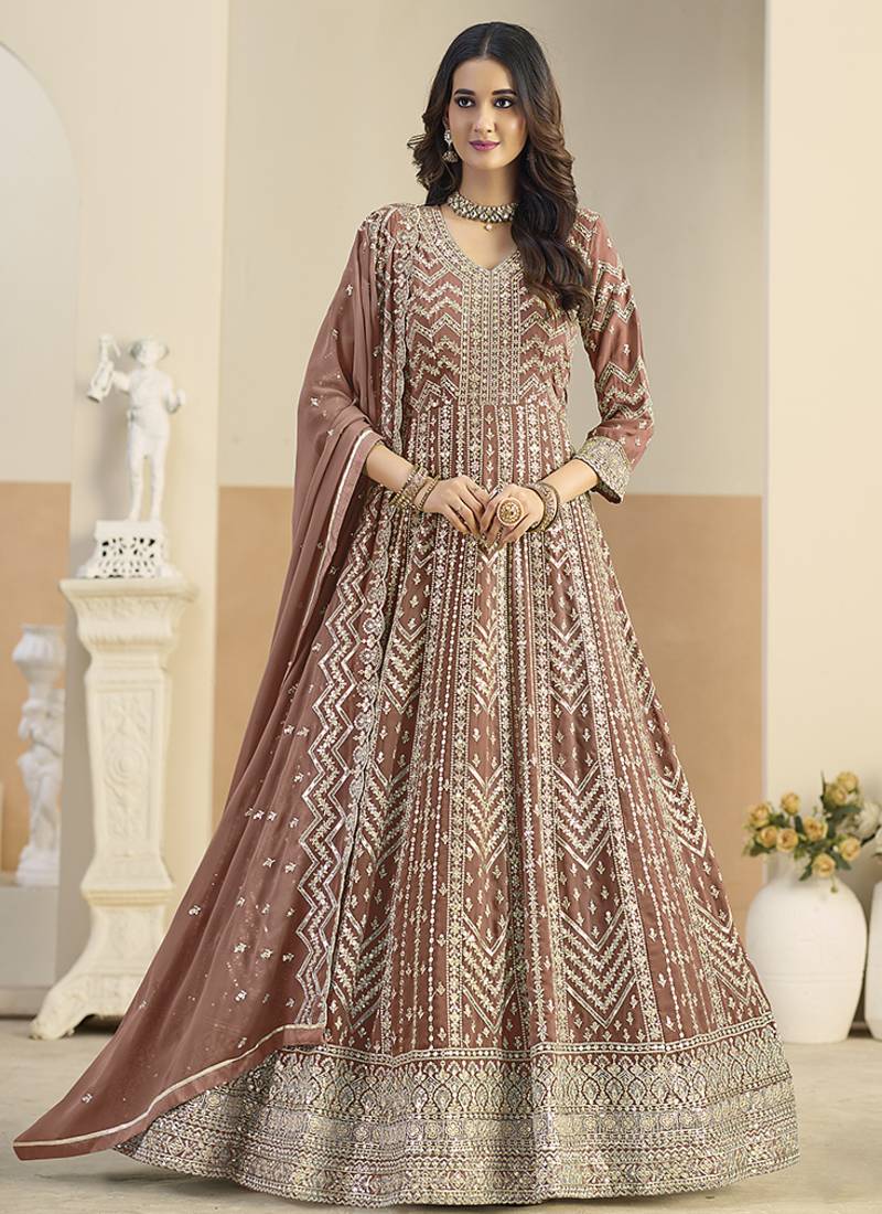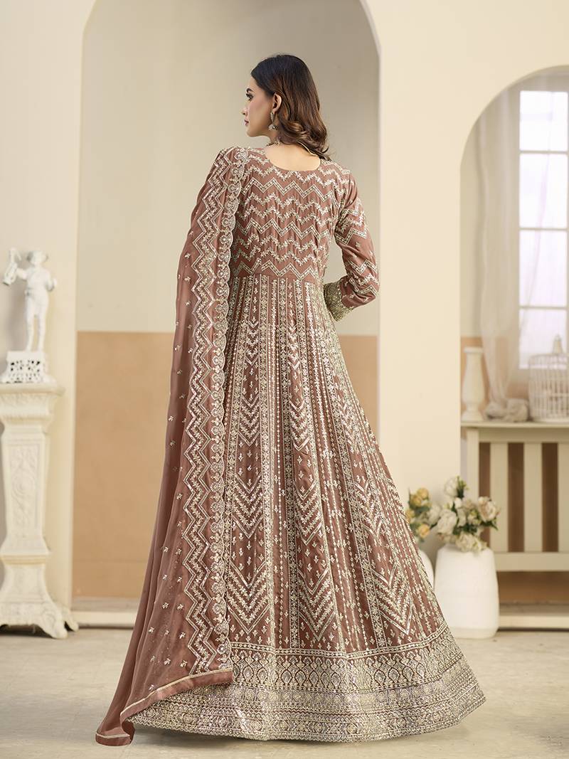 | Product Name | Faux Georgette Brown Embroidered Anarkali Salwar Kameez | |