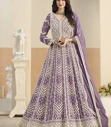 Faux georgette embroidered light purple anarkali salwar kameez semi stitched