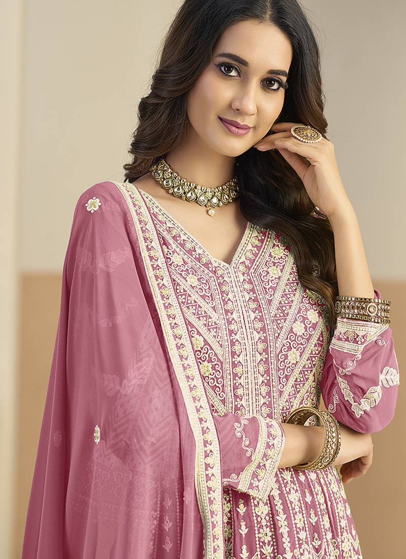 Faux georgette embroidered pink anarkali salwar kameez semi stitched