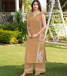 | Product Name | Light Brown Embroidered Modal Satin Straight Cut Kurta Culottes Set | |