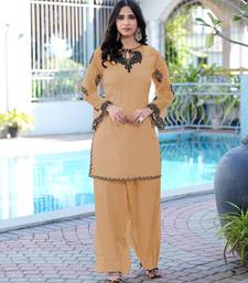 Product Name Light Brown Embroidered Organza Straight Cut Kurta Farshi Salwar Set