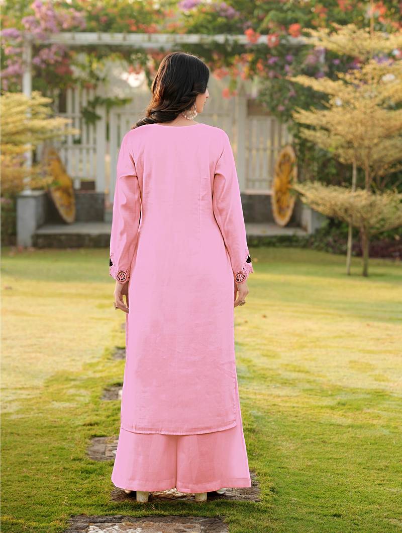 | Product Description | Light Pink Art Silk Kurta With Embroidery On Neckline, Sleeves And Kalis. |
