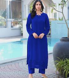 | Product Description | Royal Blue Art Silk Kurta With Intricate Cutwork Embroidery On The Neckline, Sleeves, And Hem, And Scalloped Lace Detailing Along The Front Slit. |