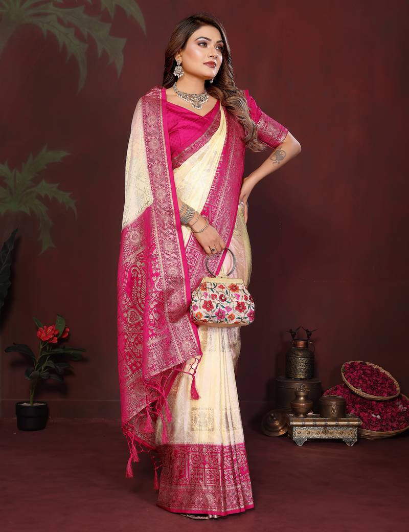 | Product Name | Off White Color Handloom Zari Woven Satin Silk Sarees | |