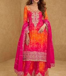 Pink embroidered silk sharara salwar kameez semi stitched