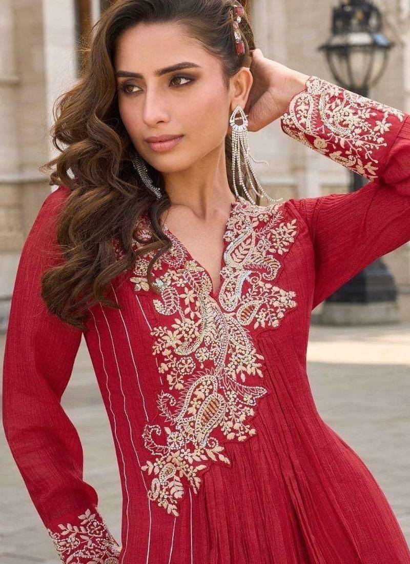 Product Name Red Embroidered Silk Party Wear Salwar Kameez
