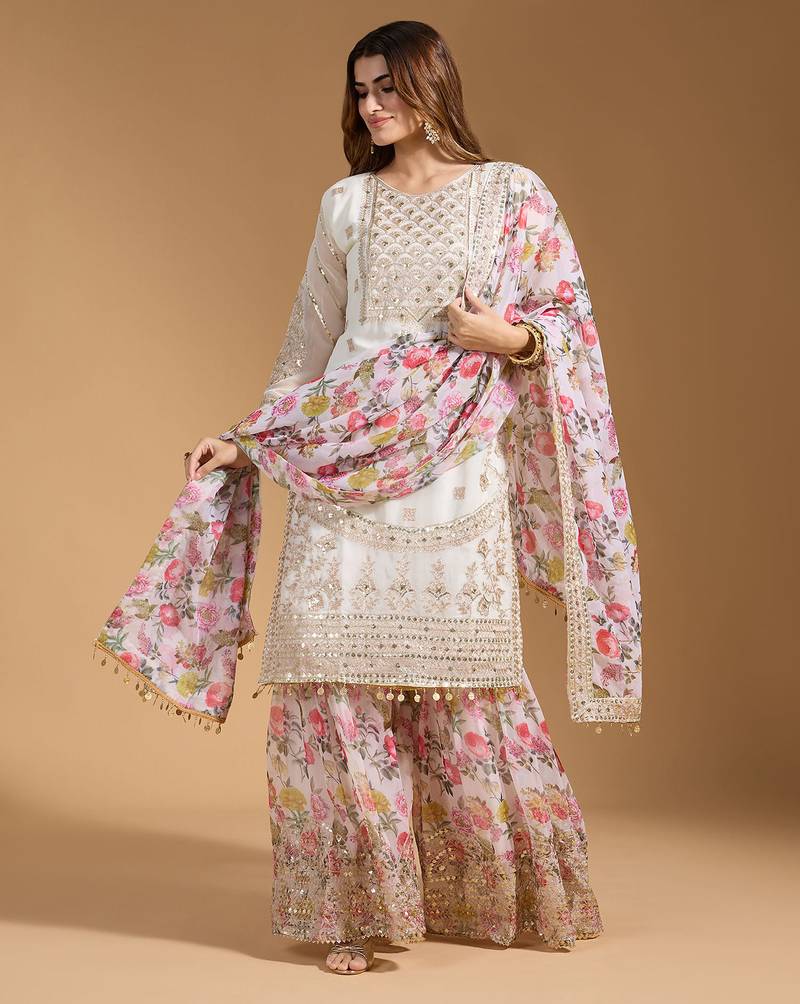 | • | Bottom | : | Color- White / Fabric- Georgette |