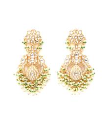 | Product Description | Featuring Kundan Chand Earrings. Gorgeous Kundan Chand Earrings With Cream Stone Work And Green Detailing Can Be Matched With Any Attire And Looks Absolutely Regal. . |