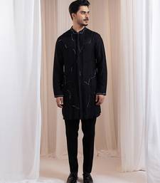 Black embroidered silk kurta pajama