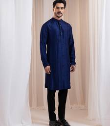 Blue embroidered silk kurta pajama