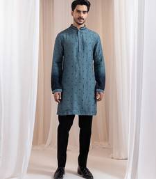 Green embroidered silk kurta pajama
