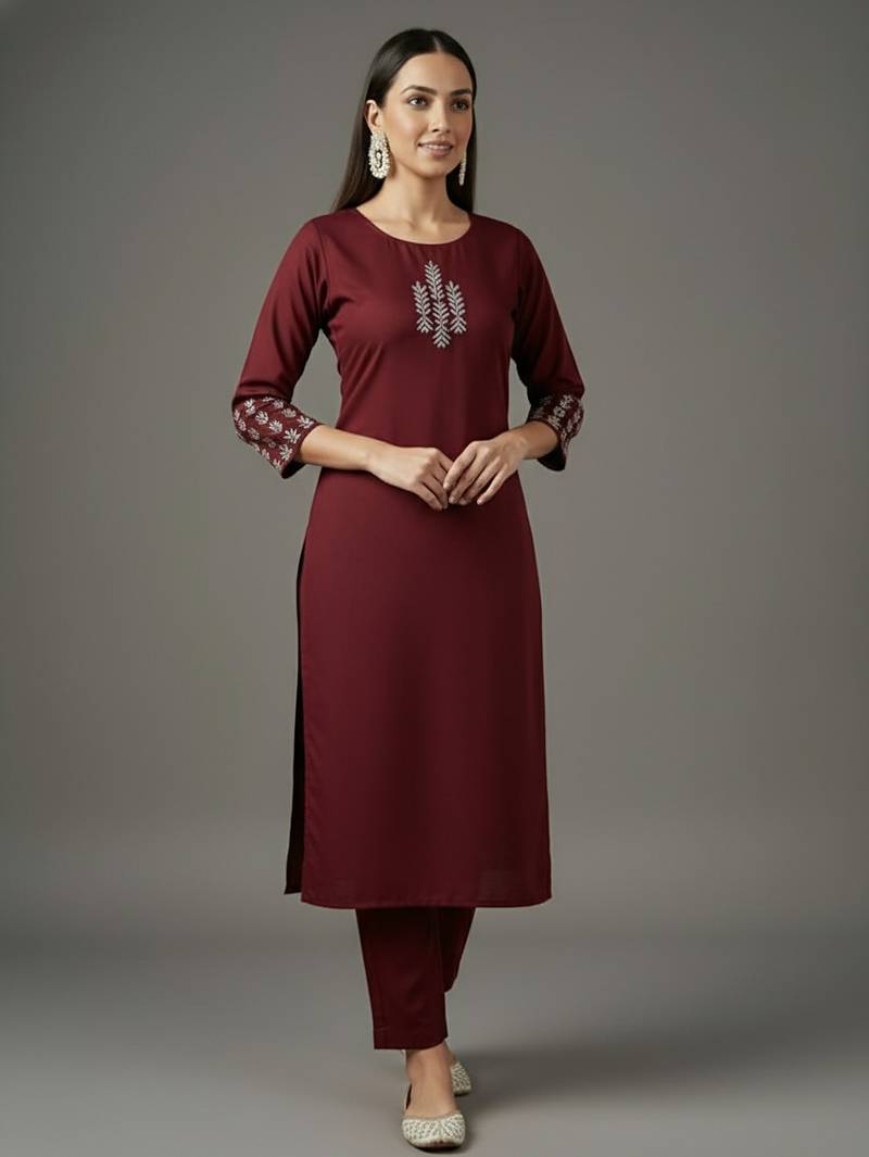 | Product Name | Maroon Embroidered Rayon Kurta Set | |