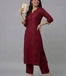 Maroon embroidered rayon kurta set stitched