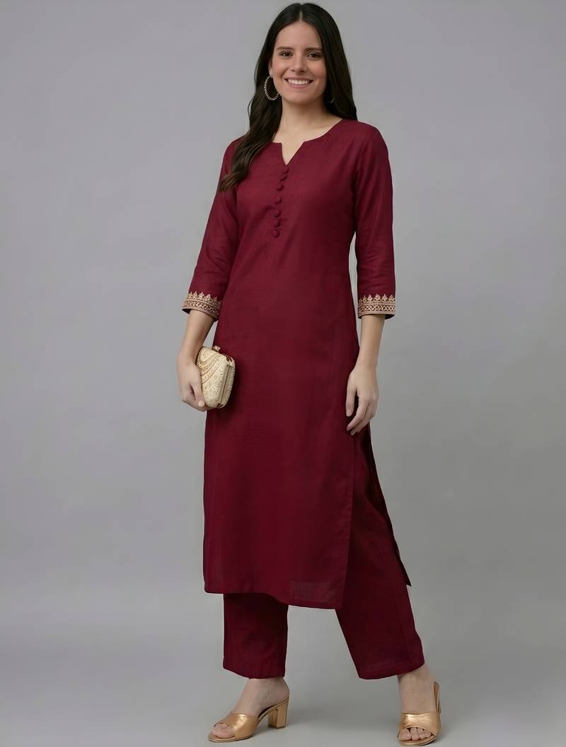 | Product Name | Maroon Embroidered Rayon Kurta Set | |