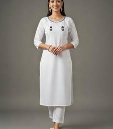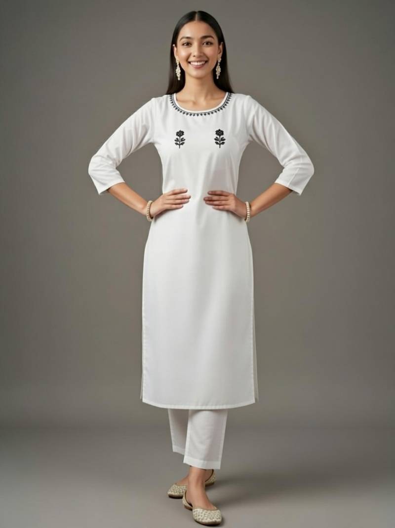 White embroidered rayon kurta set stitched