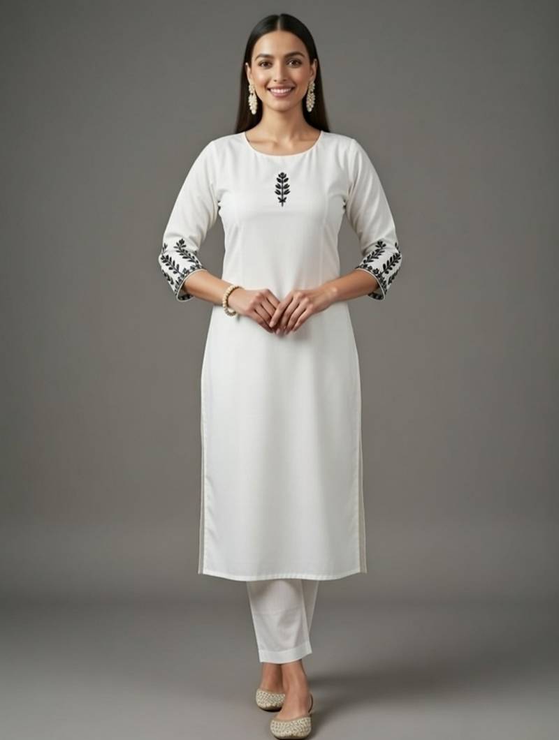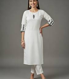 White embroidered rayon kurta set stitched