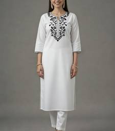 White embroidered rayon kurta set stitched