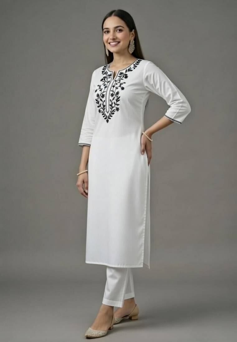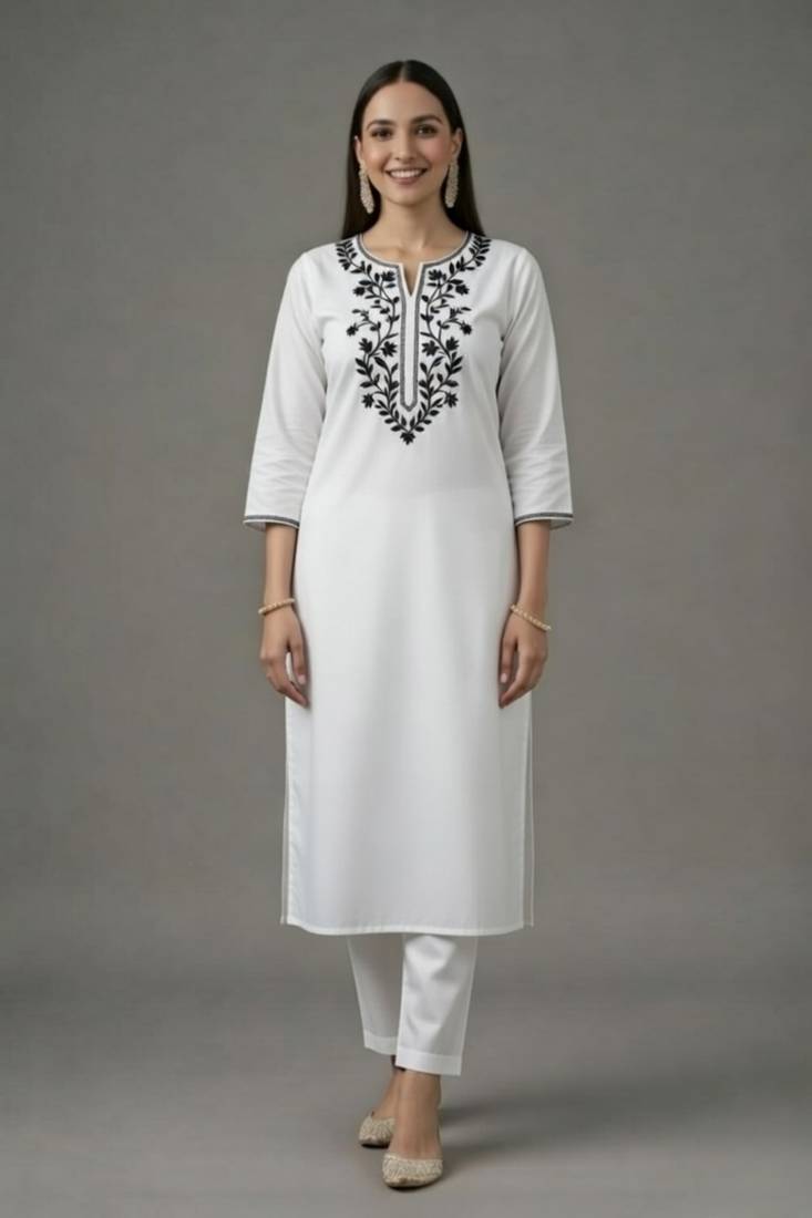 | Product Name | White Embroidered Rayon Kurta Set | |