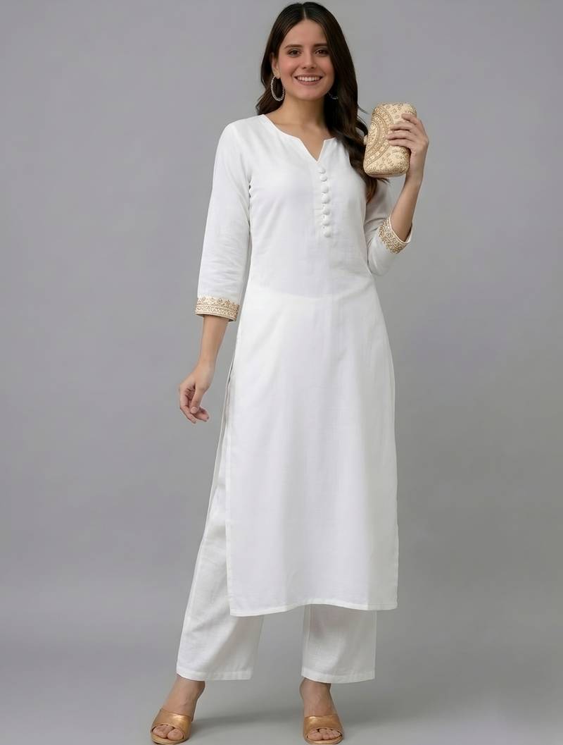 | Product Name | White Embroidered Rayon Kurta Set | |