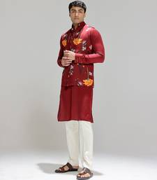 | Product Name | Red Printed Cotton Silk Nehru Jacket Set | |