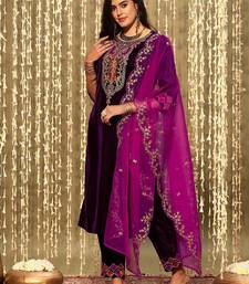 Velvet embroidery sequence work salwar suit set kurta pant with dupatta for women stitched