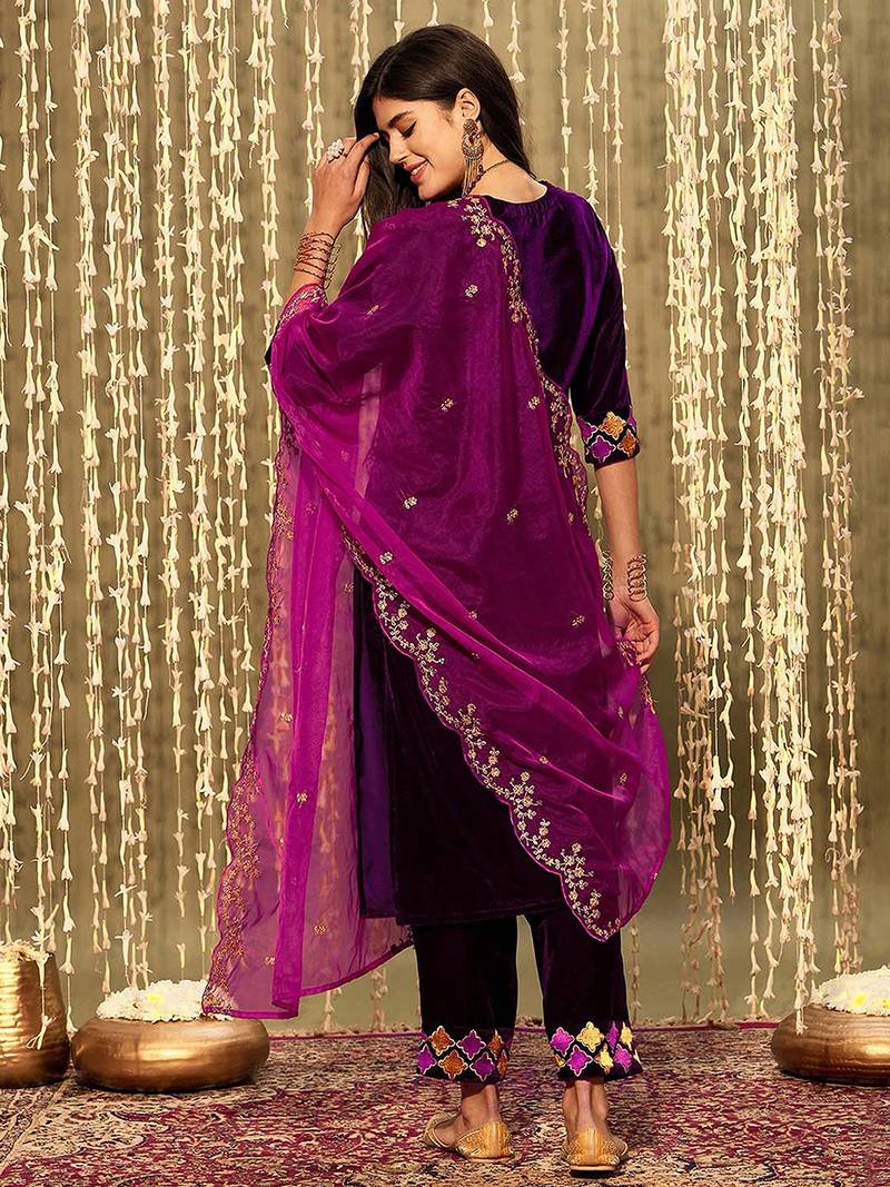 Suit Fabric: Kurta Salwar: Velvat | Dupatta: Organza