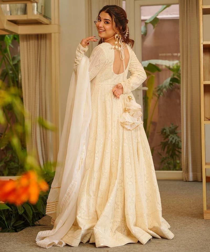 Product Name Off White Soft Georgette Party Wear Embroidery Suit Set
