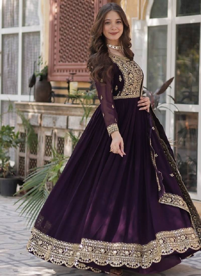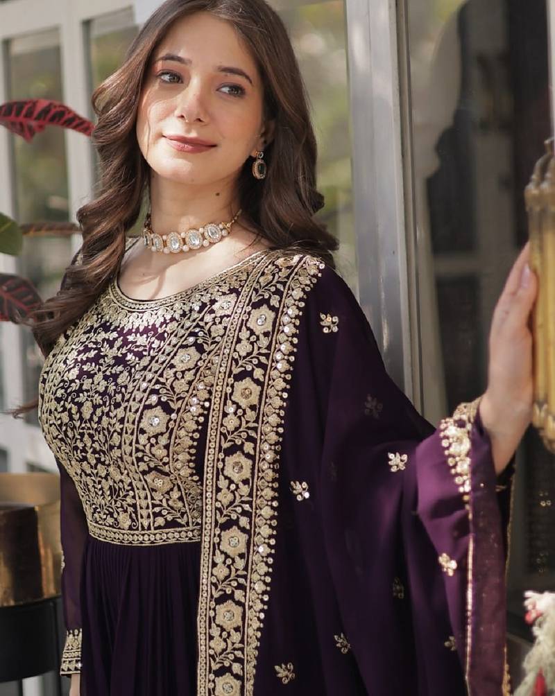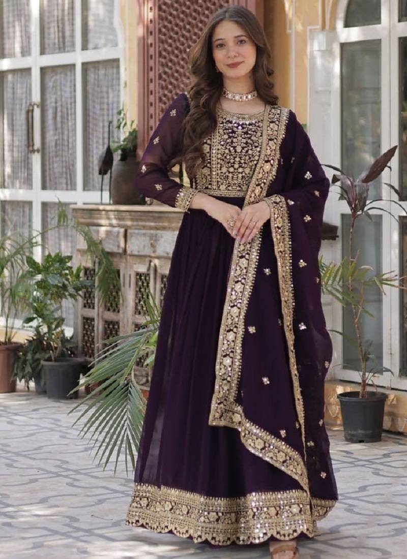 Product Name Wine Soft Georgette Party Wear Embroidery Suit Set